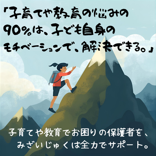 一方、「モチベーション」は動機です。自分の中で「これだけは絶対に譲れない」という理由——それが「モチベーション」です。強ければ強いほど、常に一定に保たれます。この「モチベーション」を育てるのが、「まなびコンサル授業」です。