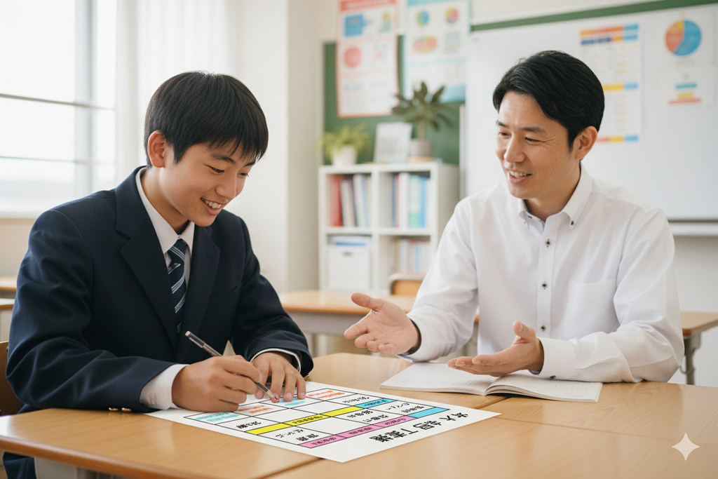 大輝:「部活と勉強の両立が大変で、いつも時間に追われていましたが、先生と一緒に1週間の予定を考えて、『この日とこの日は集中して勉強しよう』って計画を立てました。自分で決めた計画だから、なんだか守りたくなるんですよね。それに、『なぜこの勉強が必要なのか』を考えるようになって、ただ宿題をこなすだけじゃなくなりました」